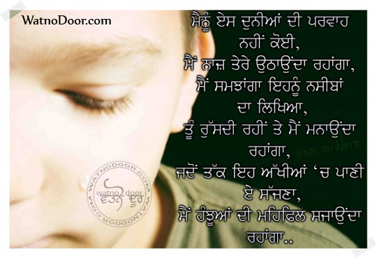 Main Iss Duniya Di Parvaah Nhi Karda 0 (No Ratings Yet) Loading... Posted by admin on April 30, 2017 in Punjabi Sad Watnodoor.com | Find More Pictures Twitter Facebook Google+ Pin It LinkedIn Email